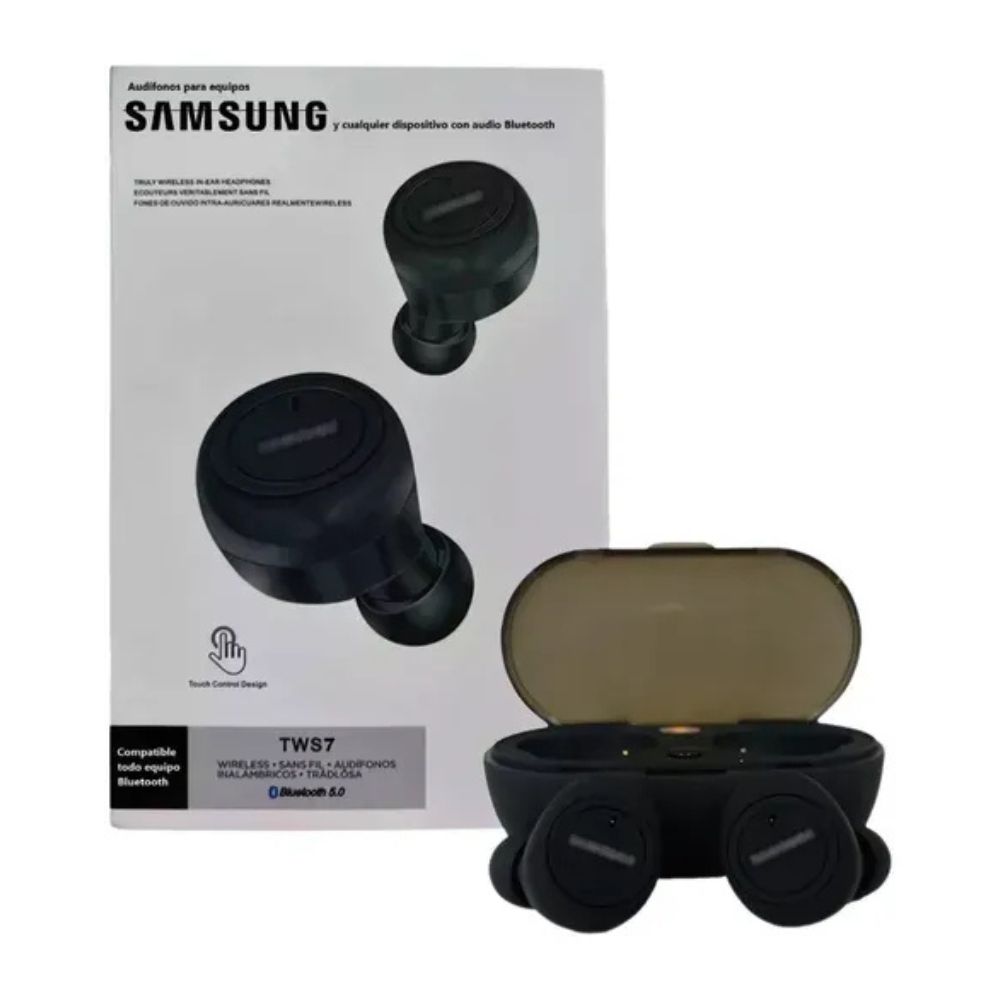 Audífonos TWS7 compatibles con cualquier dispositivo con audio Bluetooth[cite: 1649]. **Marca/Modelo:** SAMSUNG[cite: 1651, 1652]. **Precio:** $75.00[cite: 1650]. *Nota: Este producto se solicita por pedido, no disponible en tienda*[cite: 1668].